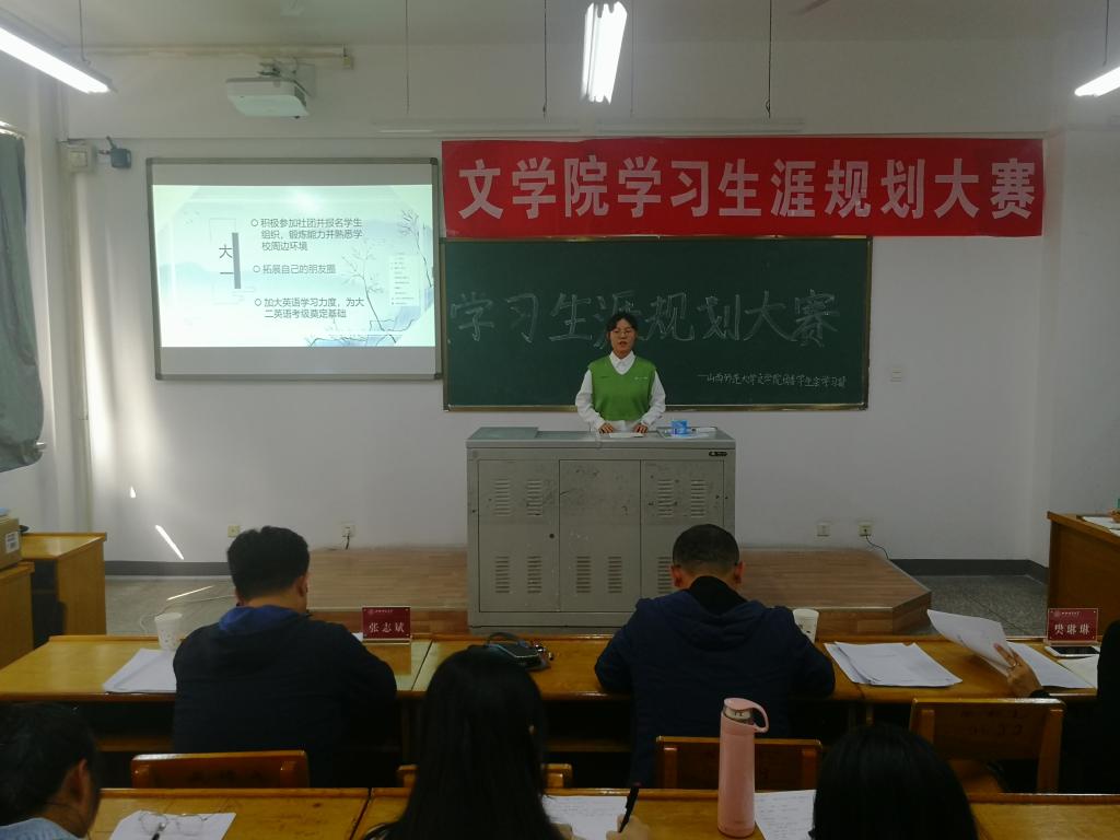 在比赛中,选手们结合PPT,从个人性格、专业认识、职业规划等多种方面,系统讲解了自己大学四年生活的目标与计划。其中,刘鑫枝同学坚持“目标-计划-行动”的渐进过程,用精美大气的PPT,落落大方的仪态举止带动了全场的氛围;王梦茹同学则借用了路遥的话语,激励自己有计划有目标地去度过大学四年。三位老师对每位同学的表现都进行了详细点评和针对性指导。