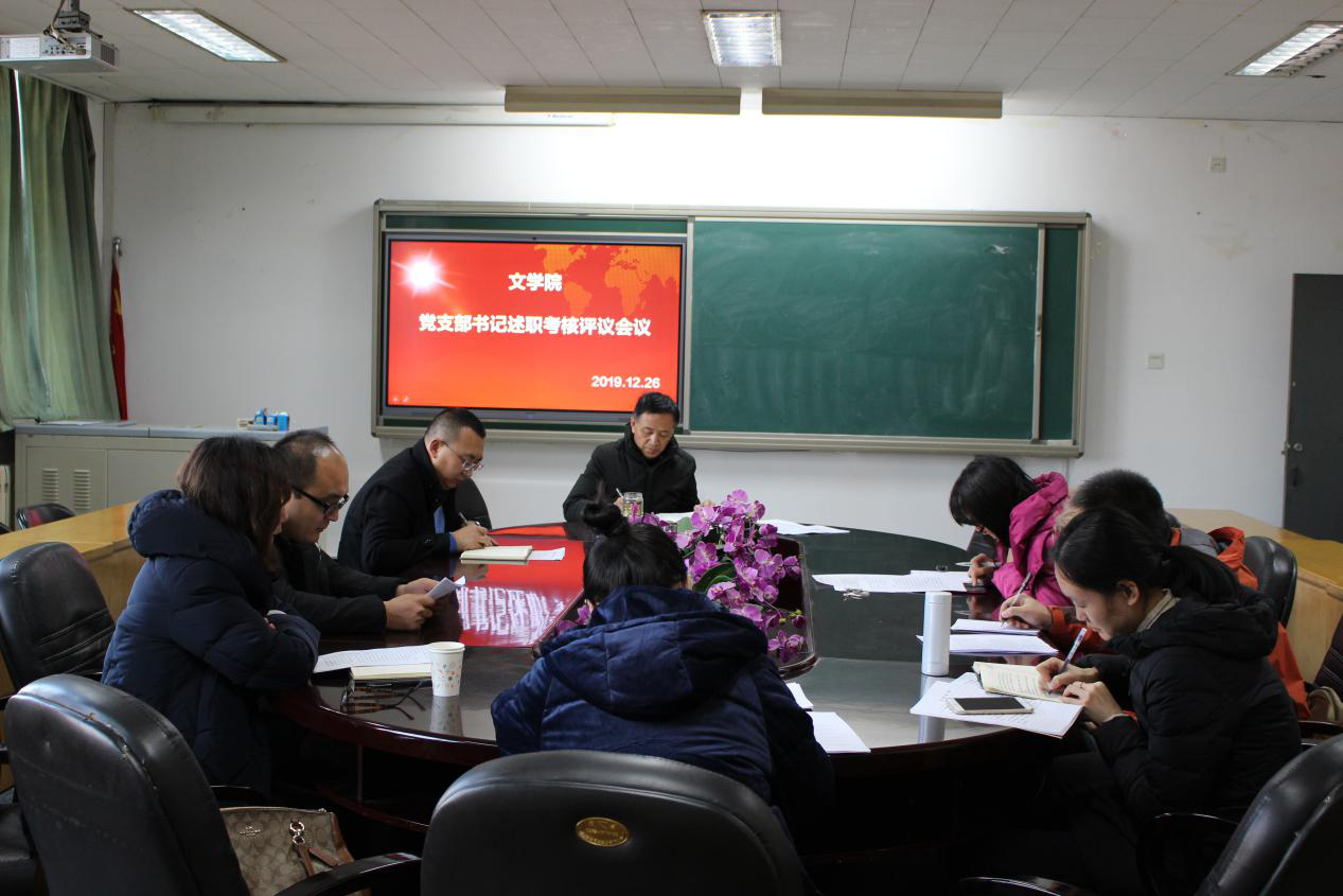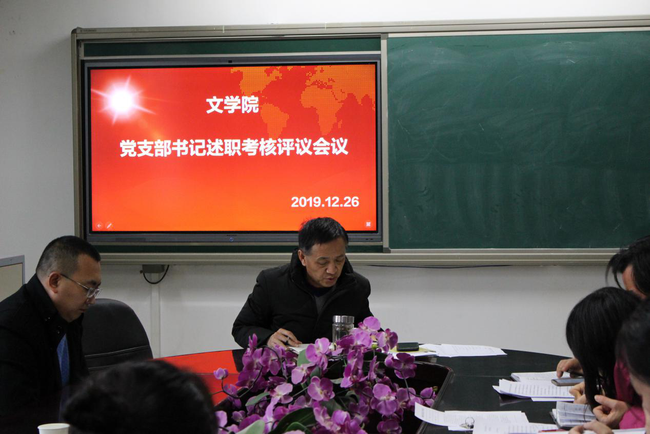 强汾生在点评中对各支部一年来的工作表示了充分肯定,并就党支部活动记录不够规范、学习时间不充足等问题提出了相应整改措施。他指出,各党支部都充分发挥了高校中基层党支部的战斗堡垒作用,充分利用了教师党员优秀资源,发挥支部特色品牌,如古代文学党支部积极指导人文知识竞赛,开展《文心雕龙》读书会等。他表示,在未来希望各支部内部能加强交流,开展特色活动,夯实三基建设。鼓励各支部积极举办活动,借助《学习强国》和党员微信群等媒体开展学习和讨论,丰富各支部活动形式。希望党支部书记继续发扬吃苦奉献的品质,促使基层党建工作不断迈向新台阶。党支部书记述职结束后,现场进行了民主评测。