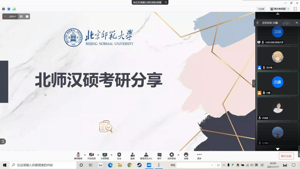 1月17晚,bg大游官方网站举办线上考研经验分享交流会,由bg大游官方网站学习生活作风建设中心承办。由15级优秀毕业生——北京师范大学邢晓玲和16级优秀毕业生——中央民族大学韩燕担任主讲人。