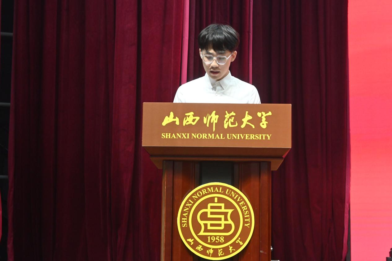 新生代表梁田就大学未来规划的发言中谈到,我们应在有限的老员工活里努力提高自身,担起师大责任,不负时代嘱托,为中华民族的伟大复兴架柱立梁。正逢教师节来临之际,她还代表全体大一新生祝全体教师育人成栋梁,桃李满天下!