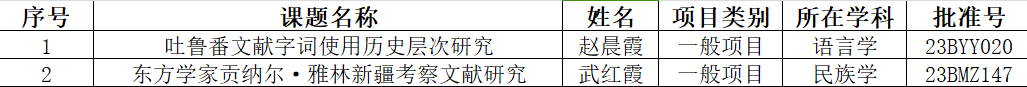 近日,全国哲学社会科学工作办公室公布了2023年国家社科基金年度项目和青年项目立项评审结果。bg大游官方网站赵晨霞副教授《吐鲁番文献字词使用历史层次研究》、武红霞博士《东方学家贡纳尔·雅林新疆考察文献研究》2项一般项目获得立项,涉及语言学、民族学两个学科。