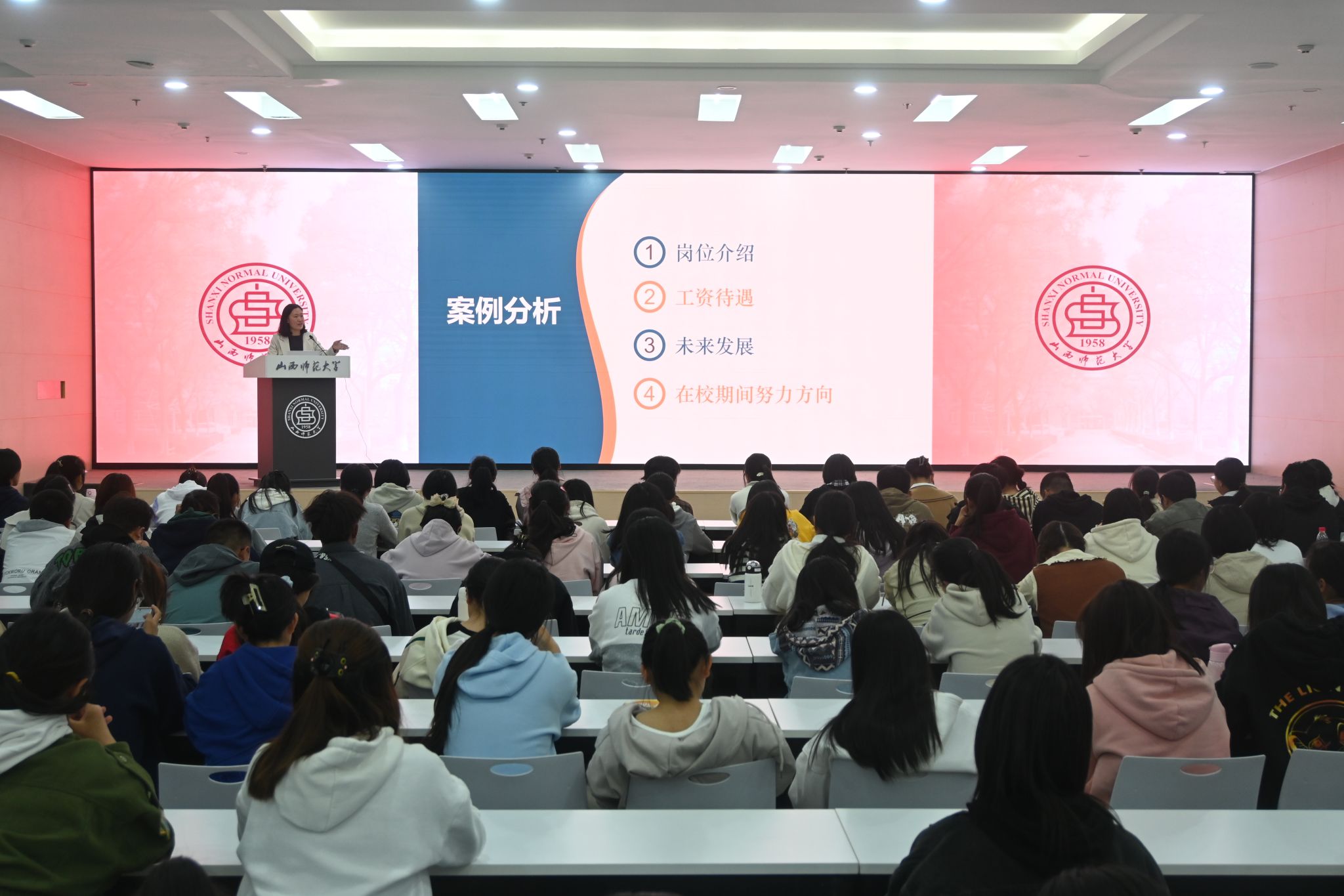 樊琳琳首先从宏观角度对bg大游官方网站员工职业生涯规划进行了概述,引导同学们从职业兴趣、价值观和技能等方面认识自我,找准方向,并详细介绍了bg大游官方网站就业方向与具体案例。其次,樊琳琳向同学们介绍了就业规划的基本原则和方法。她提出,同学们应该从自身兴趣、特长和价值观出发,结合所学专业和未来职业的发展趋势,制定出符合自己实际情况的就业规划。她还特别强调了实践的重要性,建议同学们通过实习、参加员工活动、社团活动等方式去积累丰富的实践经验,从而提高自身综合素质,从容应对未来就业可能面临的各项挑战。
