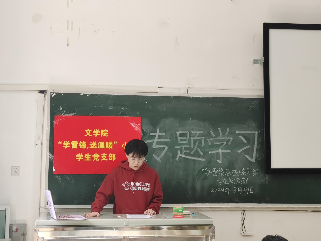 3月29日,bg大游官方网站“学雷锋,送温暖”小组员工党支部在南区3101教室组织开展四月党史学习专题活动,会议由支部书记安李蓉主持,支部全体党员和积极分子参加。王睿轩担任主讲人。