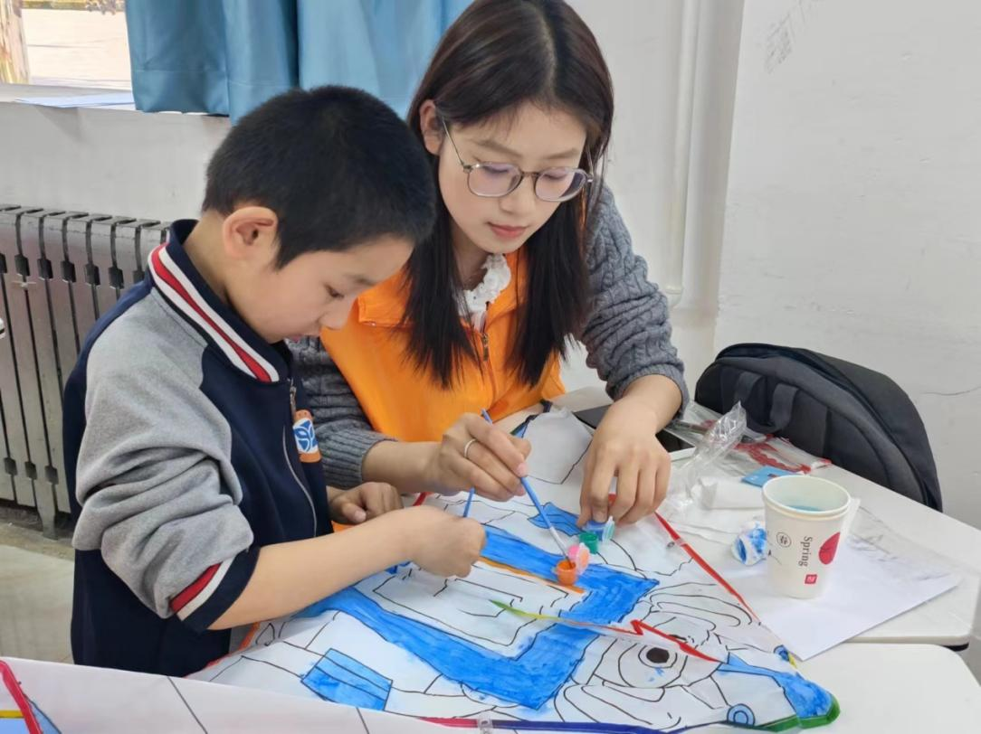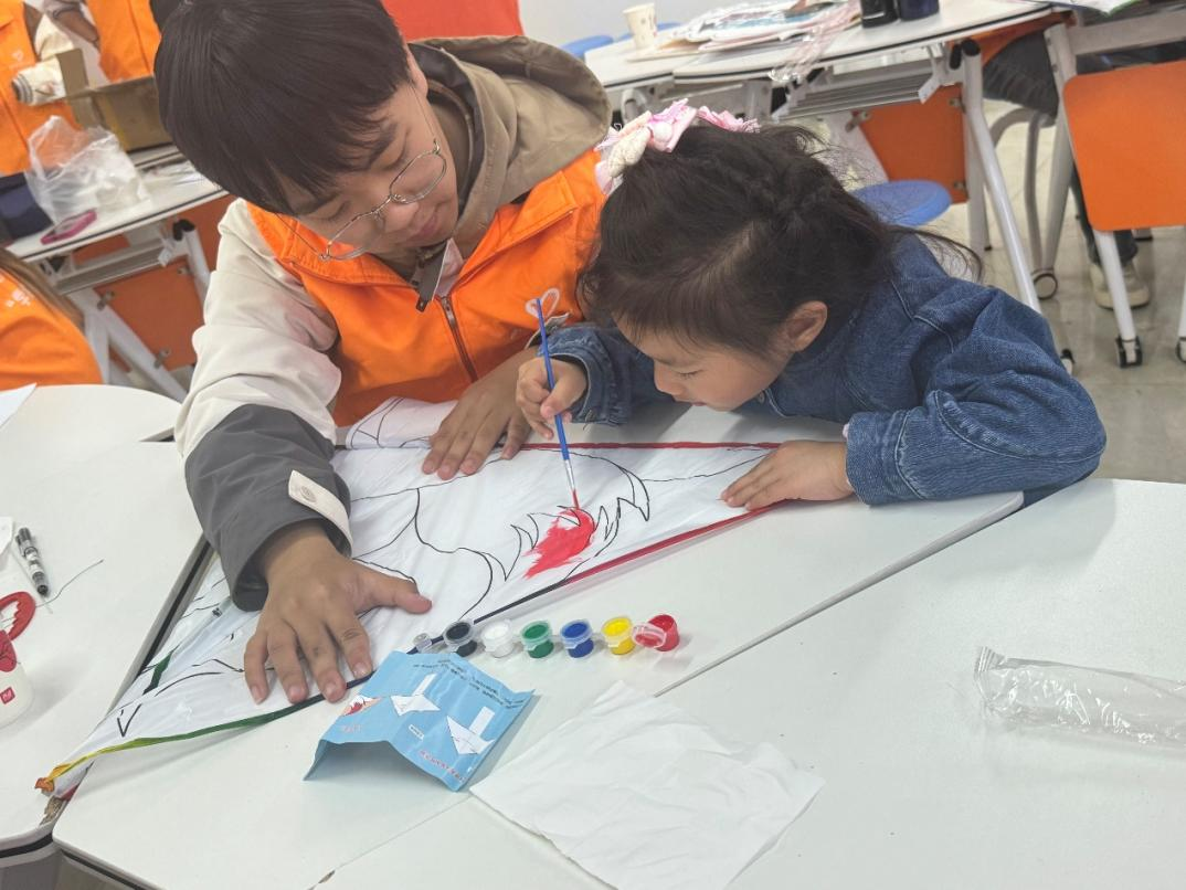 图 | 志愿者与小朋友进行风筝手绘