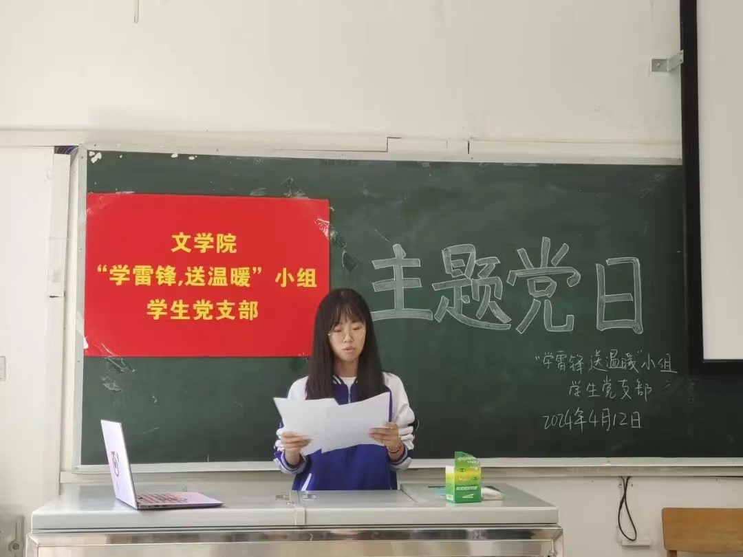 4月12日,bg大游官方网站“学雷锋,送温暖”小组员工党支部在南区3101教室组织开展“做好教书育人大先生”主题党日活动,会议由支部书记安李蓉主持,支部全体党员和积极分子参加。陈亚欣担任主讲人。