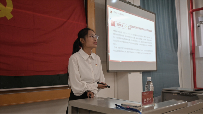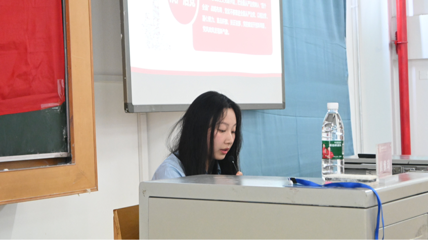 “四力先锋”员工党支部书记陶旨琴从理论维度、现实维度和具体实现方式角度一一展开,详细讲述了新时代中国共产党的历史使命。她指出,积极分子要始终明确人生目标,将个人、集体、社会、国家紧密相连,切实担负好时代所赋予的历史使命。
