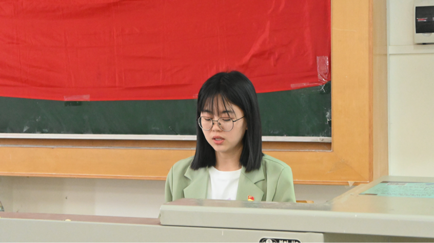 研究生党支部书记崔雅琦从全面从严治党的重大意义、战略部署以及党内政治生活三个方面展开了论述,鼓励积极分子们坚定理想信念,遵纪守法,从严从实做好各项工作,为全面从严治党贡献青春力量。