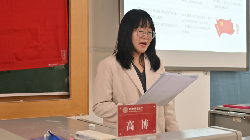 “晋俗晋美”员工党支部书记高博对中国共产党的性质、根本宗旨和最高理想进行了细致的讲解。她强调,党的各项工作始终紧紧地围绕人民,始终心系人民、行动为民,始终坚持最广大人民的根本利益,中国共产党是中国特色社会主义事业的领导核心。