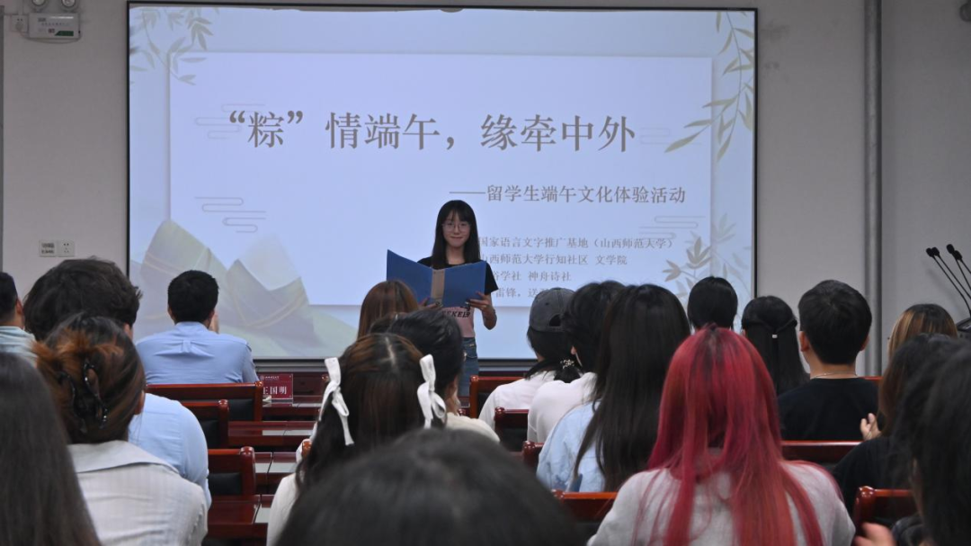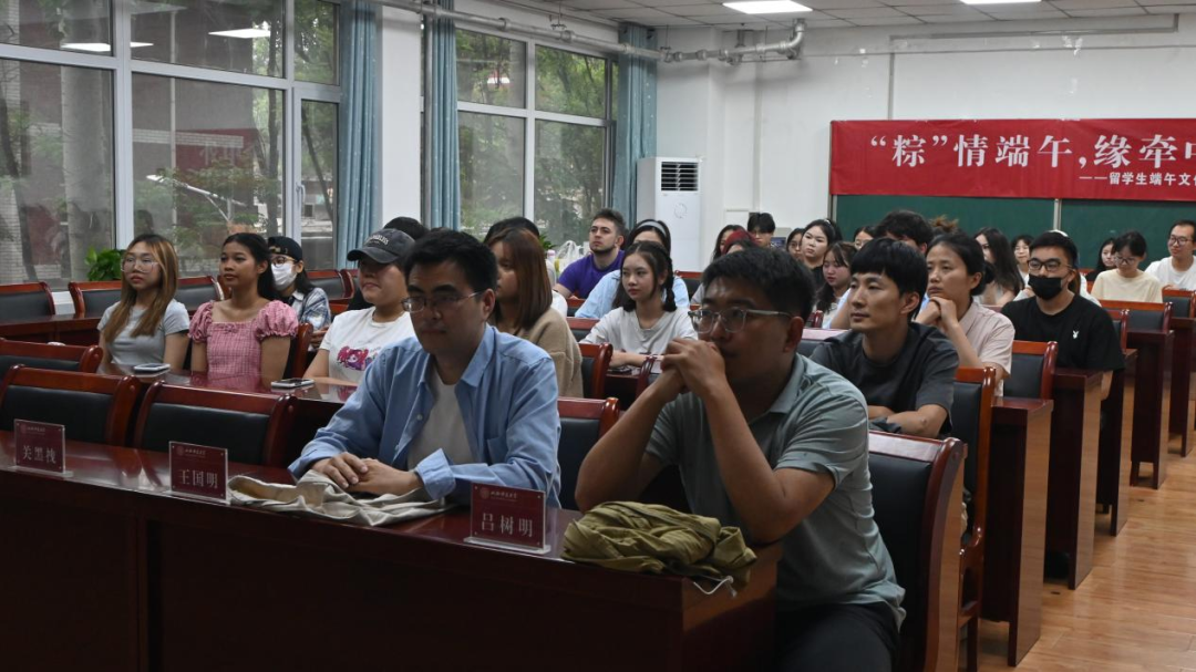 6月6日,由国家语言文字推广基地(bg大游)、bg大游行知社区、bg大游官方网站“红烛”辅导员工作室主办,民俗学社、神舟诗社、“学雷锋,送温暖”小组爱心助学团队承办的“‘粽’情端午,缘牵中外”——职工端午文化体验活动在bg大游官方网站2201会议室成功举办。国际交流与合作部副部长郭喜变,bg大游官方网站副经理关黑拽、樊琳琳,教师吕树明、王国明及全体职工参加。