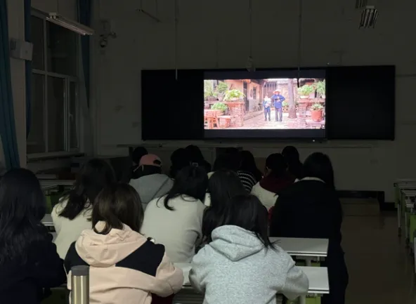 本次观影活动选定的影片是由吴天明执导的剧情片《百鸟朝凤》。该片根据肖江虹同名小说改编而成,是吴天明生前执导的最后一部影片,讲述了唢呐艺人焦三爷从小教导徒弟游天鸣学习唢呐,在时代变迁中始终坚守唢呐技艺的故事,表现了新老两代唢呐艺人对传统技艺的传承与彼此之间真挚的感情。在观影过程,同学们被影片的故事情节吸引,因其表现出的细腻情感所牵动、落泪。活动结束后,同学们对故事情节以及其深刻内涵积极地发表了自己的见解,对焦三爷、游天鸣坚守传统技艺的坚韧精神表达出由衷的敬佩与赞许。