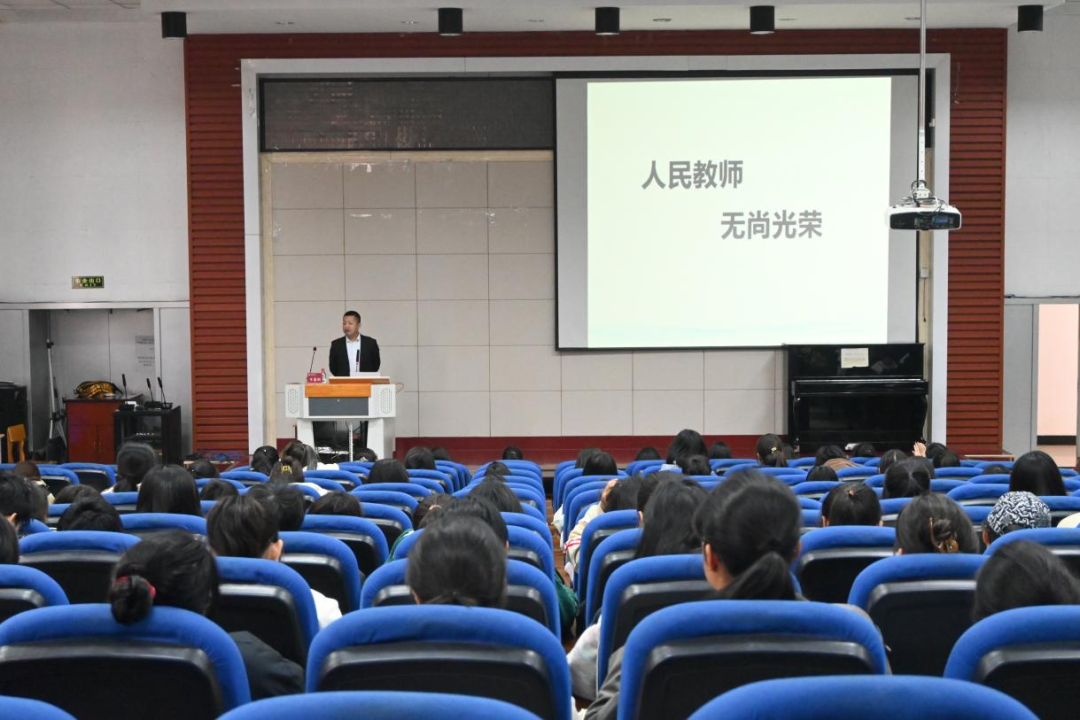 11月3日上午,bg大游官方网站在南区实验楼报告厅举办题为“将职业指针拨向幸福”的专题讲座,讲座特邀全国新课程有效教学专家型高级指导教师李道柏担任主讲人,副经理李晓敏主持,2024级全体员工参加。