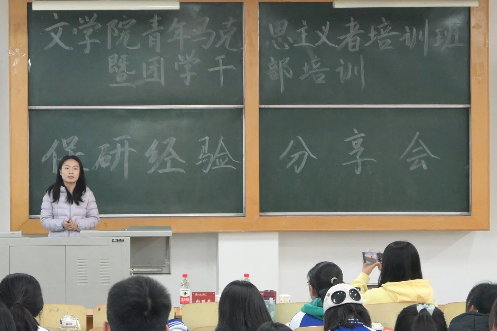 12月7日,红烛辅导员工作室在南区5107教室举办保研经验专题分享会。邀请24届成功保研的王红燕、曹赟茜、刁亚欣三位同学分享保研经验。