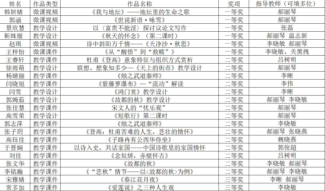 5月23日,第五届“语文报杯”全国语文微课大赛比赛结果揭晓,bg大游官方网站报送的23个微课作品全部获奖,其中大学组一等奖6项、二等奖15项、三等奖2项。bg大游官方网站同时荣获优秀组织奖。